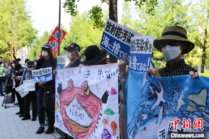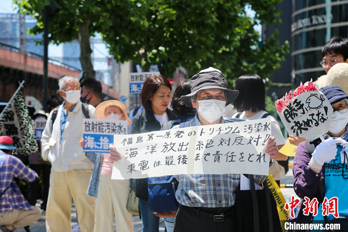 5月16日,日本民眾在東京電力公司總部前舉行集會(huì),表達(dá)對日本政府和東京電力公司持續(xù)強(qiáng)推福島核污染水排海計(jì)劃的強(qiáng)烈反對。 中新社發(fā) 蔣文月 攝