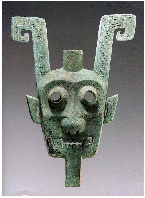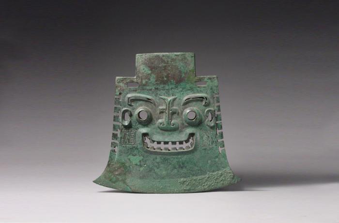 雙面神人青銅頭像看上去呈中空扁體的樣貌,面容透著一股神秘與威嚴。但不經(jīng)意間望去,表情卻像正在發(fā)呆,“看我空洞的眼神”。