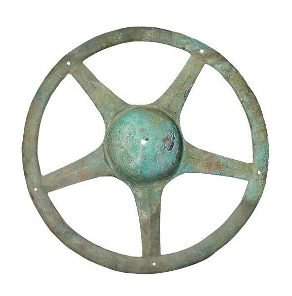 三星堆出土文物中,青銅太陽輪形似如今的“方向盤”,其用途引來了種種猜測:有研究者認為這是車輪,還有觀點認為是用于軍事作戰(zhàn)的盾牌上的盾飾。多數(shù)意見認為,這種形制的器物應即是“太陽形器”。它是常設在古蜀國神廟中的神器,或用于祭祀儀式。