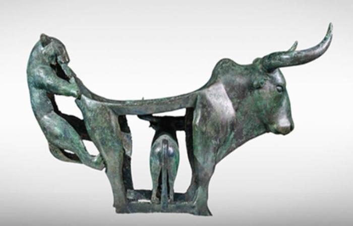 作為古滇國的一件祭器,牛虎銅案特殊的組合造型使整個銅案重心平穩(wěn),大小和諧,動靜均衡統(tǒng)一,在力學和美學上都達到了極高水平,是云南青銅文化藝術的杰作。