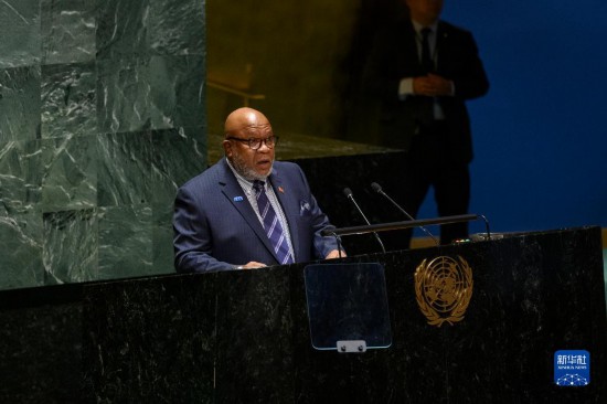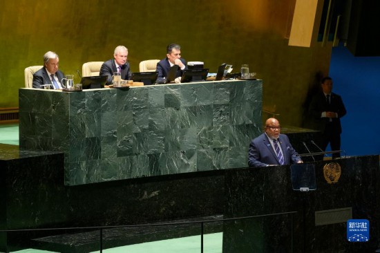 6月1日,在位于紐約的聯(lián)合國總部,特立尼達(dá)和多巴哥常駐聯(lián)合國代表丹尼斯·弗朗西斯(前)當(dāng)選第78屆聯(lián)合國大會(huì)主席后發(fā)表講話。新華社發(fā)(聯(lián)合國供圖/洛伊·費(fèi)利普攝)