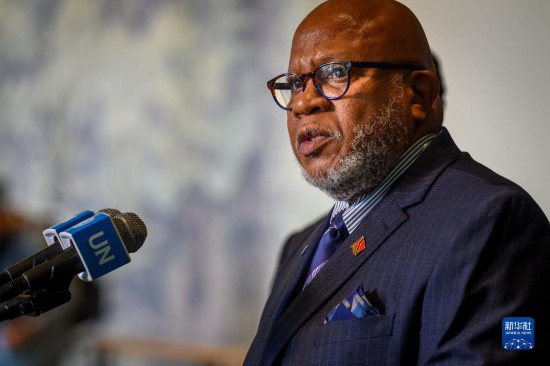 6月1日,在位于紐約的聯(lián)合國總部,特立尼達(dá)和多巴哥常駐聯(lián)合國代表丹尼斯·弗朗西斯當(dāng)選第78屆聯(lián)合國大會(huì)主席后向記者發(fā)表談話。新華社發(fā)(聯(lián)合國供圖/洛伊·費(fèi)利普攝)