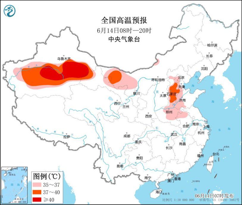 昨天,新疆中南部、內(nèi)蒙古西部、廣東中部等地出現(xiàn)35℃以上高溫天氣,新疆吐魯番局地40~42.9℃。未來三天,華北東部、黃淮及新疆、甘肅西部、內(nèi)蒙古西部等地部分地區(qū)有35~39℃的高溫天氣,新疆吐魯番等地最高氣溫將超過40℃。氣象專家提醒,北方地區(qū)暑氣大漲,天氣炎熱,老人、小孩或體質較弱人群應盡量避免午后高溫時段外出,同時注意避暑防曬,做好補水降溫的工作。