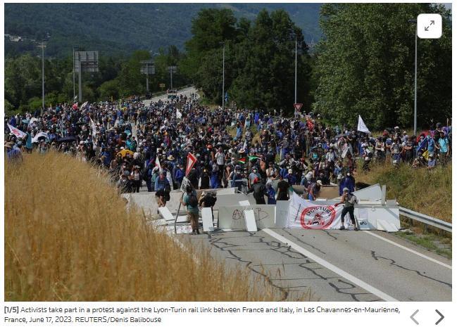 據(jù)報(bào)道,當(dāng)天,大約2000名抗議者聚集在阿爾卑斯山地區(qū)的莫里耶訥河谷,反對(duì)當(dāng)局在當(dāng)?shù)匦藿ǜ哞F。據(jù)介紹,這條高鐵計(jì)劃連接法國里昂和意大利,線路途經(jīng)阿爾卑斯山地區(qū)。
