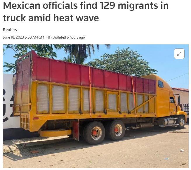 據(jù)報道,移民當(dāng)局表示,他們在一輛卡車內(nèi)發(fā)現(xiàn)了這些移民,事發(fā)地近日正遭受熱浪侵襲,當(dāng)天的室外溫度已達(dá)到45攝氏度。