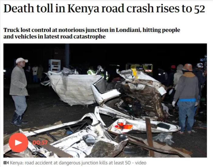 中新網(wǎng)7月2日電 綜合外媒報(bào)道,當(dāng)?shù)貢r(shí)間6月30日,肯尼亞西部發(fā)生近年來(lái)最嚴(yán)重車(chē)禍,一輛載有集裝箱的卡車(chē)“失控”,撞向多輛汽車(chē)和附近人群。截至7月1日,遇難人數(shù)已升至50余人。