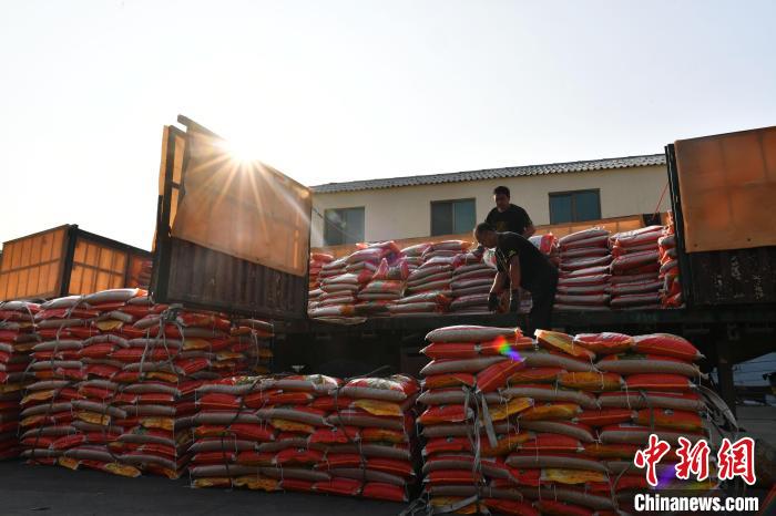 8月15日,河北省涿州市供銷(xiāo)社農(nóng)資集采集配中心,一輛滿載34噸冬小麥種子的農(nóng)資配送車(chē)輛抵達(dá)這里,工人們正在卸車(chē)。中新社記者 翟羽佳 攝