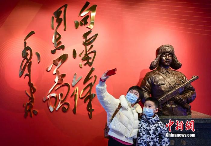 2月24日,遼寧撫順,民眾參觀雷鋒紀(jì)念館展陳及紀(jì)念毛澤東等老一輩革命家為雷鋒同志題詞六十周年專題展覽。中新社記者 于海洋 攝