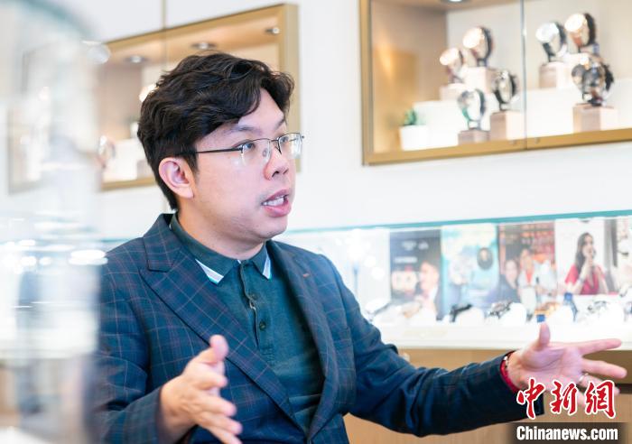 香港陀飛輪手表品牌“萬(wàn)希泉”創(chuàng)始人沈慧林日前接受中新社記者采訪?!≈行律缬浾?侯宇 攝