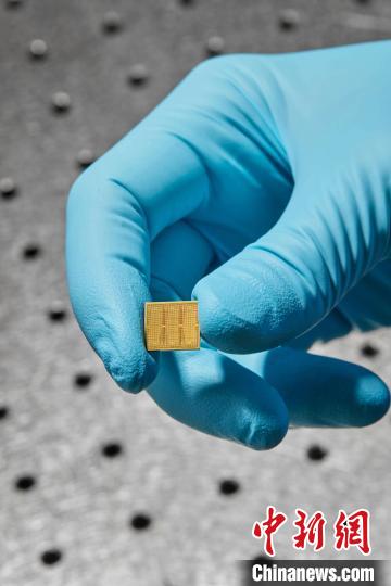 研究者手上拿著的14納米模擬AI芯片(圖片來自Ryan Lavine)。施普林格·自然 供圖