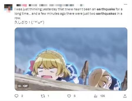 有網(wǎng)友在社交媒體上表示,“昨天還在想(日本)很久沒(méi)發(fā)生地震了,幾分鐘前卻連續(xù)發(fā)生了兩次地震?!?/p>