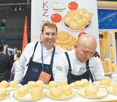 8月17日,在新疆烏魯木齊舉行的2023(中國(guó))亞歐商品貿(mào)易博覽會(huì)上,來自哈薩克斯坦的廚師制作該國(guó)美食。
