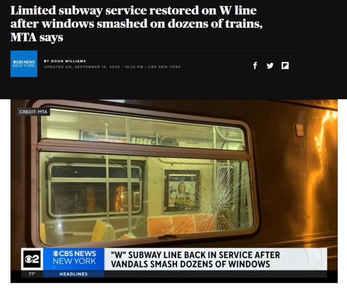 報道稱,紐約地鐵此前也遭遇過此類破壞,2020年,在兩個月時間內(nèi),紐約地鐵7號線列車約有100扇車窗遭到破壞。