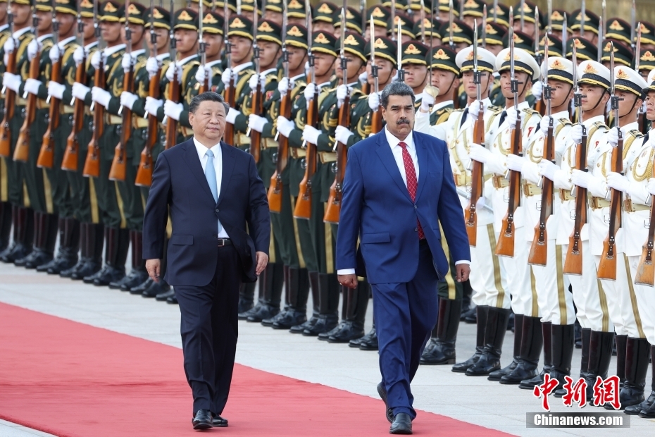 9月13日下午,中國(guó)國(guó)家主席習(xí)近平在北京人民大會(huì)堂同來(lái)華進(jìn)行國(guó)事訪問(wèn)的委內(nèi)瑞拉總統(tǒng)馬杜羅舉行會(huì)談。會(huì)談前,習(xí)近平在人民大會(huì)堂東門外廣場(chǎng)為馬杜羅舉行歡迎儀式。中新社記者 盛佳鵬 攝