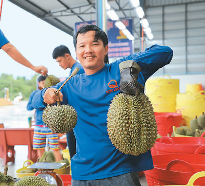“榴蓮種植面積每年都在增長(zhǎng),一些橡膠、棕櫚園紛紛改種榴蓮,因?yàn)橹袊?guó)市場(chǎng)巨大,采購(gòu)量逐年遞增。以前每公斤榴蓮只能賣三四十泰銖,賣到80泰銖果農(nóng)就高興得不得了,可這兩年漲到了一百三四十泰銖,中國(guó)節(jié)日期間甚至漲到180泰銖?!碧﹪?guó)南部榴蓮協(xié)會(huì)會(huì)長(zhǎng)西立告訴記者,“以前果農(nóng)的日子不好過(guò),很多年輕人不愿做果園生意,但現(xiàn)在不少果農(nóng)后代在大學(xué)畢業(yè)后都選擇返回家鄉(xiāng),用知識(shí)發(fā)展果園?!?/p>