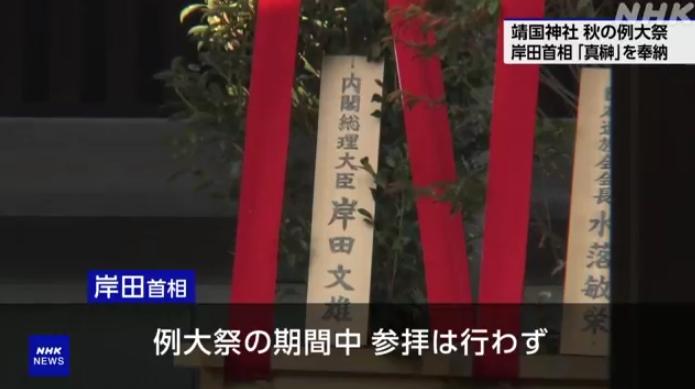 據(jù)報道,岸田在2021年10月就任首相一職之前從未向靖國神社供奉過“真榊”祭品,就任后便沿襲前首相安倍晉三的做法,已多次供奉。