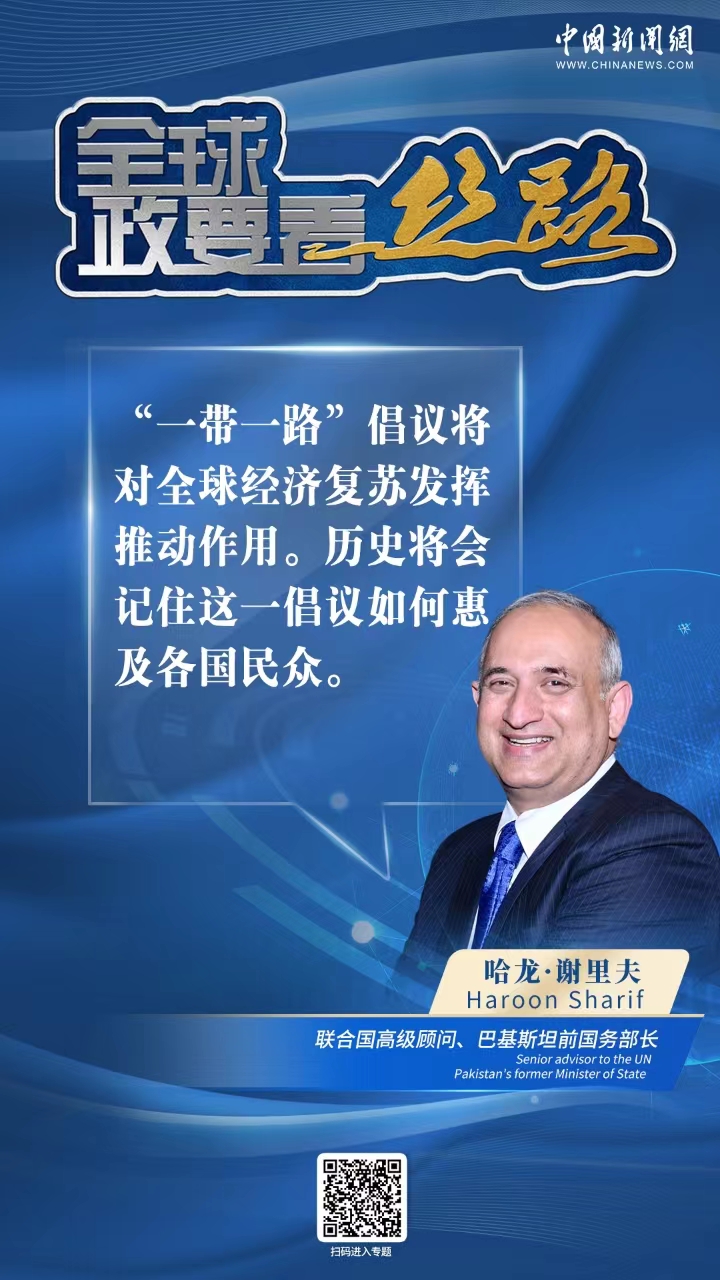 聯(lián)合國高級顧問、巴基斯坦前國務(wù)部長哈龍·謝里夫指出,“一帶一路”倡議將對全球經(jīng)濟(jì)復(fù)蘇發(fā)揮推動(dòng)作用。歷史將會(huì)記住這一倡議如何惠及各國民眾。