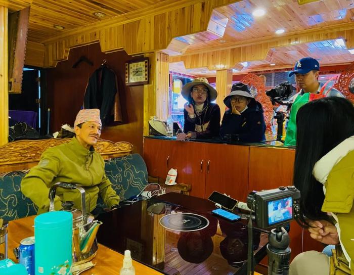圖為庫瑪爾接受“遇見西藏 扎西德勒”網(wǎng)絡(luò)國際傳播活動記者團專訪。(主辦方供圖)