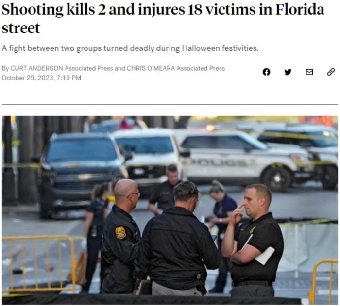 中新網(wǎng)10月30日電 據(jù)美國廣播公司(ABC)報道,當?shù)貢r間29日,美國佛羅里達州坦帕市萬圣節(jié)慶?;顒悠陂g發(fā)生大規(guī)模槍擊,造成2人死亡,18人受傷。