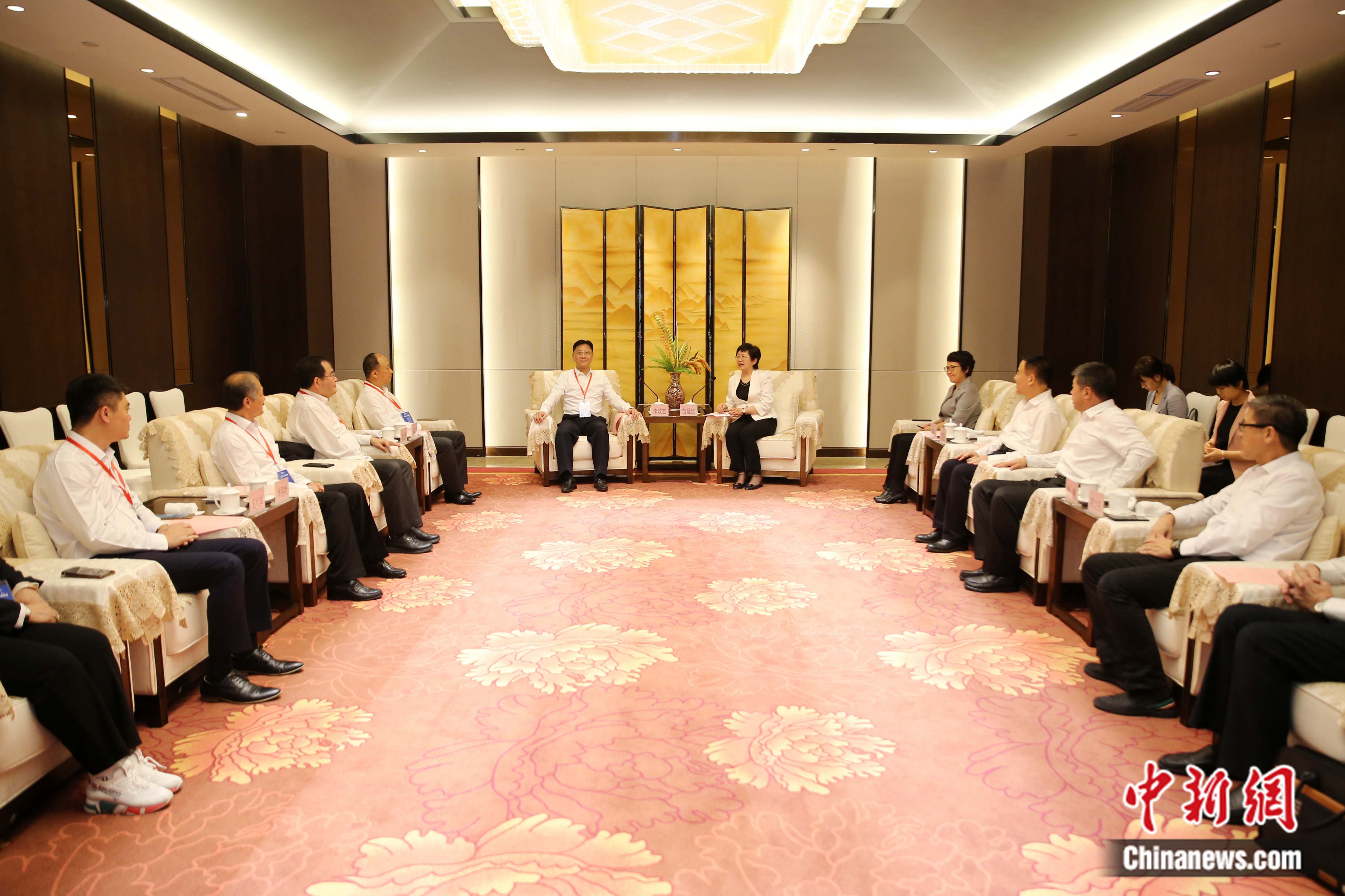 11月6日,海南省委常委、統(tǒng)戰(zhàn)部部長(zhǎng)苗延紅在??跁?huì)見參加2023臺(tái)商峰會(huì)的部分嘉賓代表。海南省委統(tǒng)戰(zhàn)部供圖