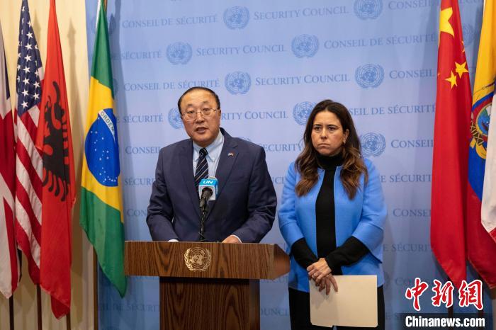 中新社聯(lián)合國(guó)11月6日電 (記者 王帆)應(yīng)中國(guó)和阿聯(lián)酋要求,聯(lián)合國(guó)安理會(huì)6日就巴以沖突局勢(shì)舉行緊急磋商,安理會(huì)本月輪值主席中國(guó)常駐聯(lián)合國(guó)代表張軍主持會(huì)議。會(huì)后,張軍同阿聯(lián)酋常駐聯(lián)合國(guó)代表努賽貝共同會(huì)見記者,就當(dāng)前巴以局勢(shì)發(fā)表談話。