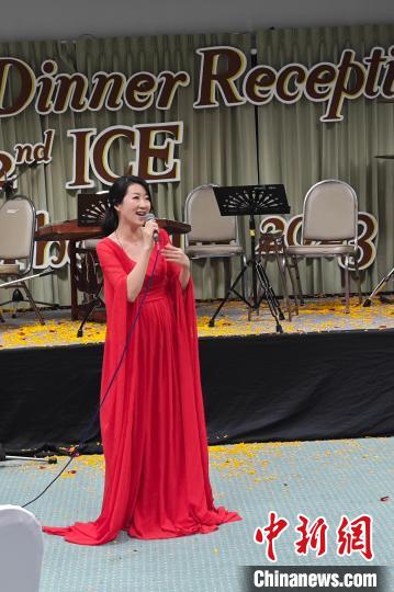廣州新華學院音樂老師邱思暉在晚會上表演節(jié)目。受訪者供圖