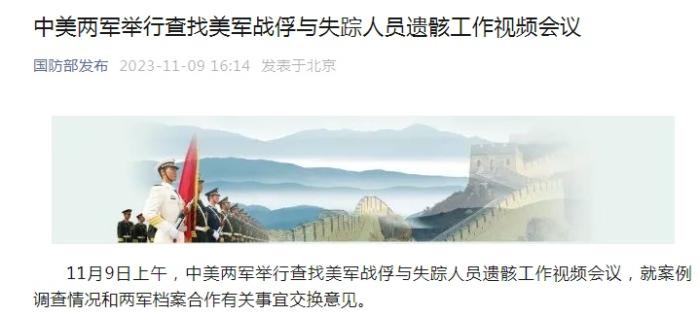 中新網(wǎng)11月9日電 據(jù)國防部發(fā)布微信公眾號(hào)消息,11月9日上午,中美兩軍舉行查找美軍戰(zhàn)俘與失蹤人員遺骸工作視頻會(huì)議,就案例調(diào)查情況和兩軍檔案合作有關(guān)事宜交換意見。
