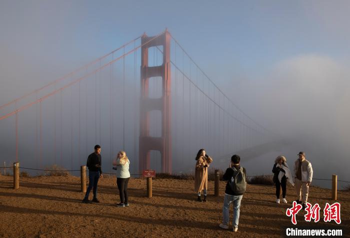 當(dāng)?shù)貢r間11月4日,游客參觀舊金山金門大橋?!≈行律缬浾? 劉關(guān)關(guān) 攝
