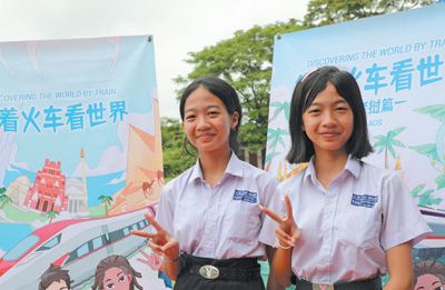 今年6月,由中國(guó)中車(chē)集團(tuán)有限公司舉辦的中車(chē)“中老文化海外交流會(huì)”在老撾萬(wàn)象舉行,老撾民眾可以近距離感受先進(jìn)的軌道列車(chē)科技和鐵路文化。圖為參加活動(dòng)的萬(wàn)象宗佩中學(xué)學(xué)生。