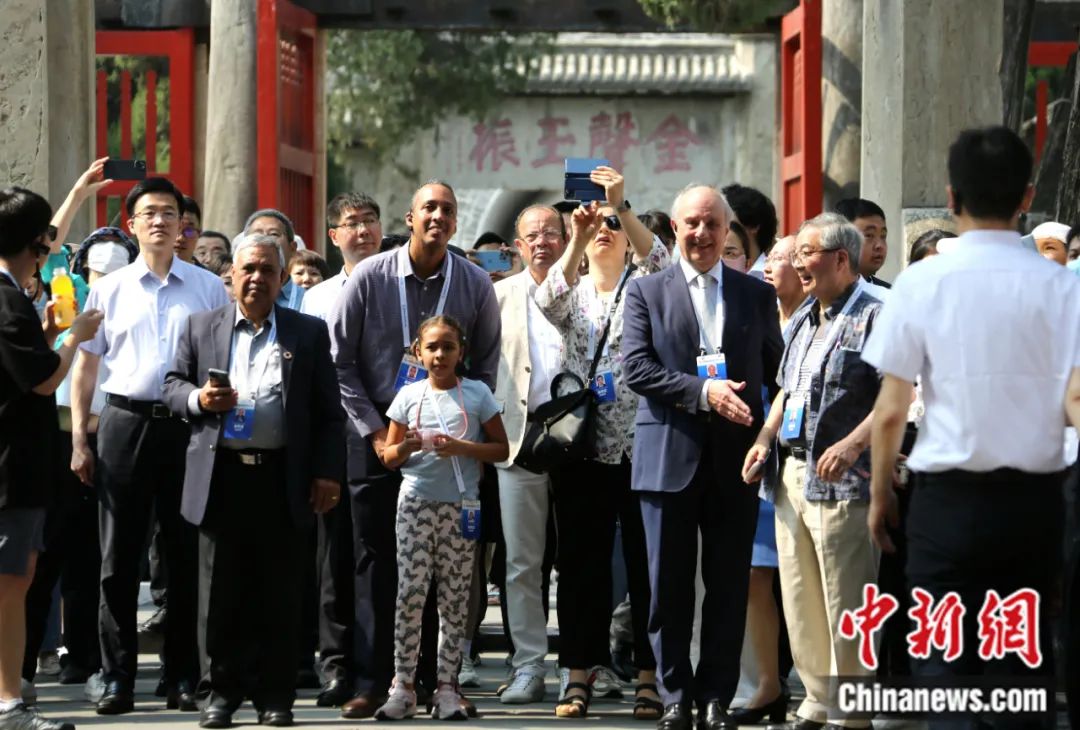 2023年6月27日,正在山東曲阜參加世界互聯(lián)網(wǎng)大會數(shù)字文明尼山對話的中外嘉賓,來到孔廟、孔府沉浸式體驗(yàn)中華傳統(tǒng)文化。沙見龍 攝