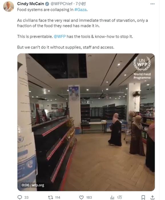 圖片來(lái)源:世界糧食計(jì)劃署執(zhí)行主任辛迪·麥凱恩社交媒體賬戶截圖