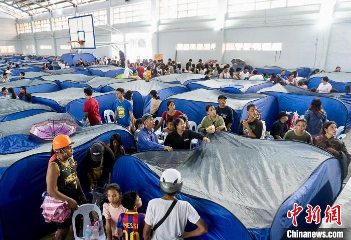 當(dāng)?shù)貢r(shí)間11月21日,菲律賓北薩馬省受災(zāi)民眾被轉(zhuǎn)移至一處臨時(shí)避難場所。(北薩馬省信息辦公室供圖)