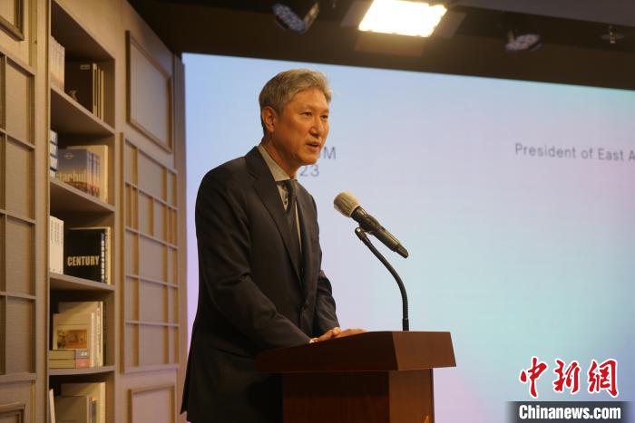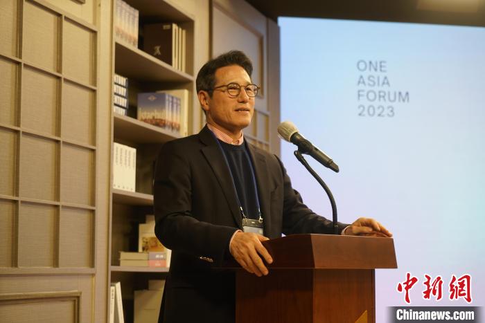 圖為韓國(guó)東亞文化中心院長(zhǎng)盧載憲致辭。記者 劉旭 攝