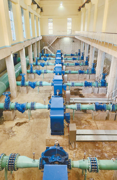 坦桑尼亞阿魯沙新供水系統(tǒng)項(xiàng)目由中國(guó)電建市政建設(shè)集團(tuán)有限公司承建。項(xiàng)目設(shè)計(jì)日供水量為12.5萬立方米/天,可滿足阿魯沙40萬人的用水需求。項(xiàng)目建成后將極大地改善阿魯沙市區(qū)的供水短缺問題,對(duì)推動(dòng)當(dāng)?shù)亟?jīng)濟(jì)發(fā)展、增進(jìn)民生福祉具有重要作用。圖為阿魯沙新供水系統(tǒng)項(xiàng)目5號(hào)提升泵站內(nèi)景。