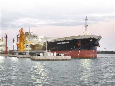 肯尼亞蒙巴薩港新建KOT油碼頭是一座具有國(guó)際領(lǐng)先水平的現(xiàn)代化油氣裝卸碼頭,由中國(guó)交通建設(shè)集團(tuán)有限公司承建。該碼頭能夠同時(shí)實(shí)現(xiàn)原油、重油、汽油、柴油、煤油和液化石油氣的進(jìn)出口轉(zhuǎn)運(yùn)功能,投入使用后大幅提升了蒙巴薩港油氣中轉(zhuǎn)能力,為肯尼亞經(jīng)濟(jì)發(fā)展增添新動(dòng)力。圖為??吭谠摯a頭的一艘油輪正在進(jìn)行卸油作業(yè)。