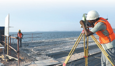 坦桑尼亞馬古富力大橋由中國(guó)土木工程集團(tuán)有限公司和中鐵十五局聯(lián)合承建,連接坦桑尼亞蓋塔省和姆萬扎省,是坦桑尼亞重要的內(nèi)陸國(guó)際通道。大橋建成后將極大改善當(dāng)?shù)亟煌顩r,帶動(dòng)坦桑尼亞與周邊國(guó)家的互聯(lián)互通,促進(jìn)區(qū)域經(jīng)濟(jì)社會(huì)發(fā)展。圖為該項(xiàng)目外籍工程師正在使用全站儀進(jìn)行室外測(cè)控。