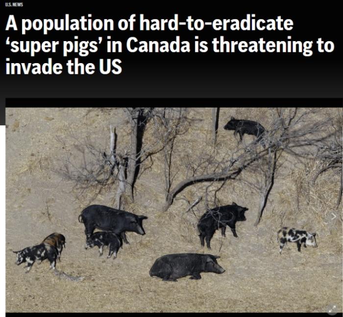 報道稱,“超級豬”目前很有可能南下進(jìn)入美國,包括明尼蘇達(dá)州、北達(dá)科他州以及蒙大拿州等美國北部多州正嚴(yán)陣以待防止“超級豬”入侵。