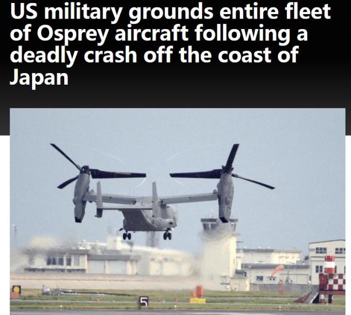 美聯(lián)社指出,此次墜機事件再次引發(fā)了對“魚鷹”飛機安全性的質(zhì)疑。美國空軍、海軍和海軍陸戰(zhàn)隊采取了非同尋常的措施,停飛了數(shù)百架飛機。