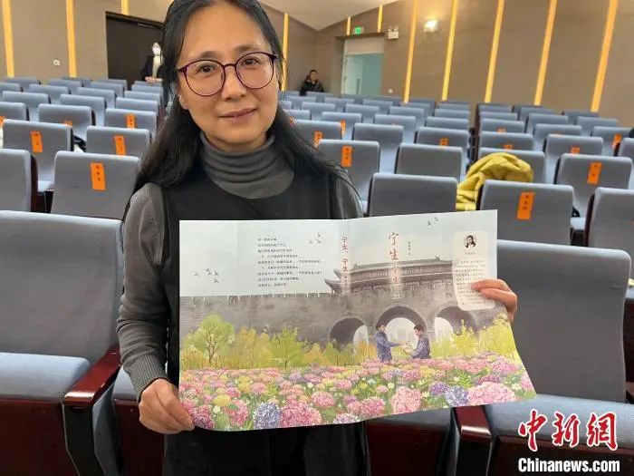 南京市長江路小學英語教師楊筱艷展示她創(chuàng)作的《寧生,寧生》書籍封面。朱曉穎 攝