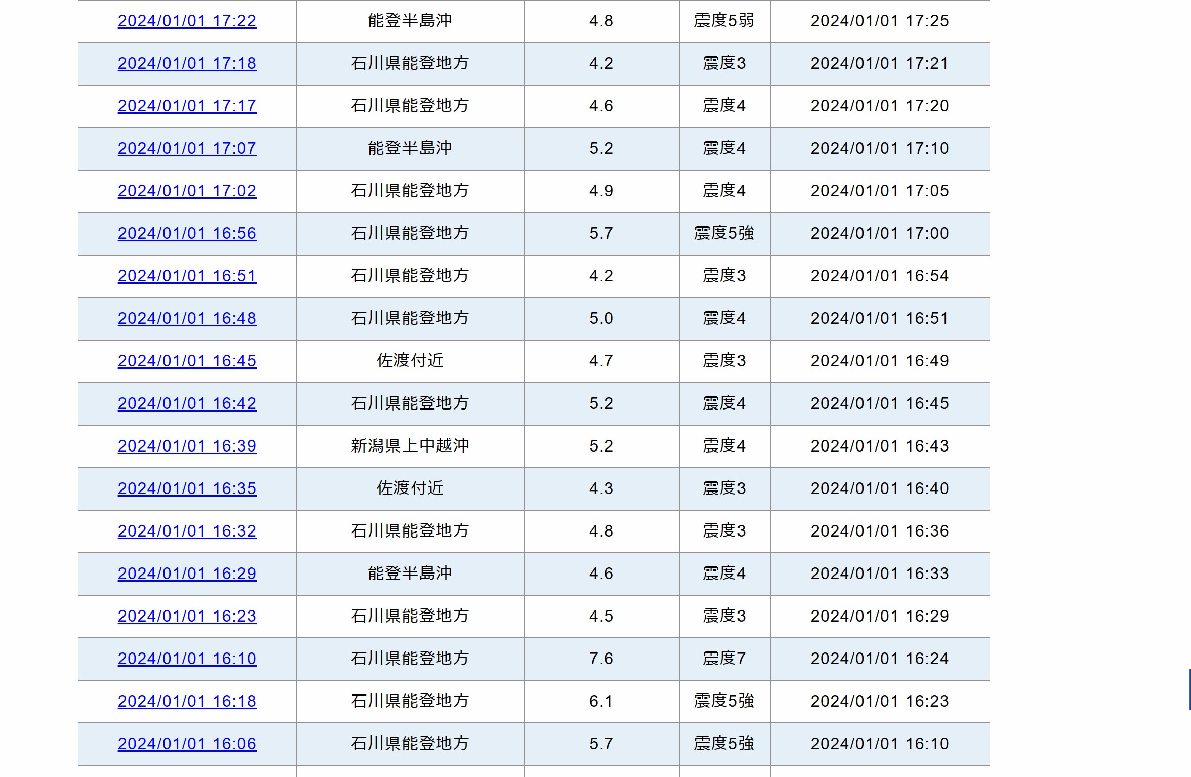 當?shù)貢r間16時06分至17時22分期間,石川縣能登地區(qū)附近發(fā)生至少15次地震,地震震級均在4級以上,其中至少有7次在5級以上。