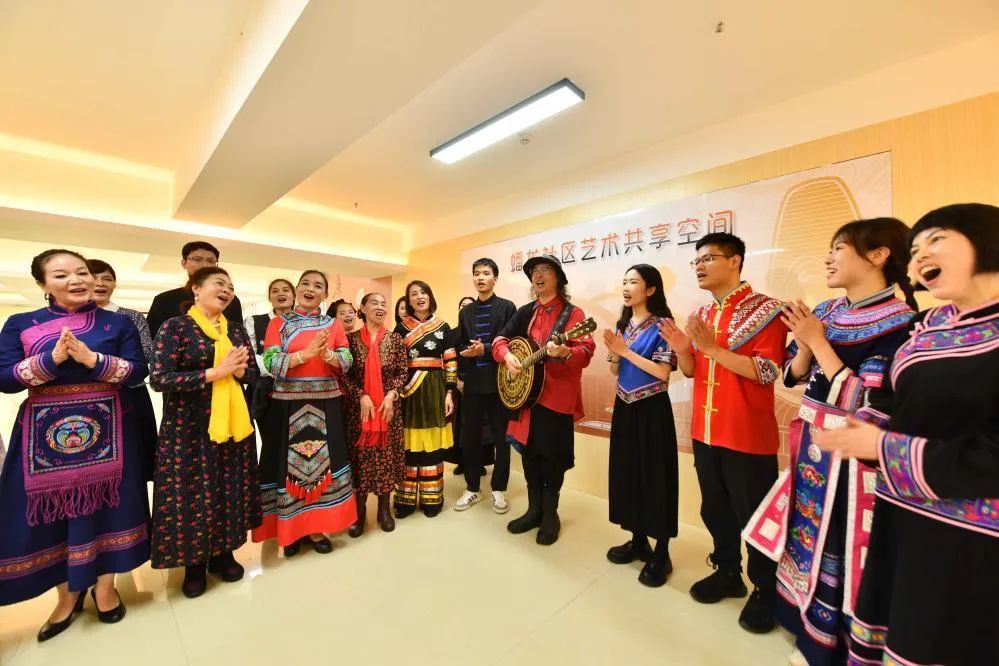 ▲在蟠龍社區(qū)新時(shí)代文明實(shí)踐站,居民在唱山歌。新華社記者 黃孝邦攝