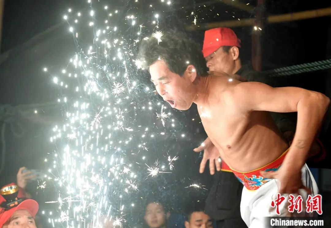 赤腳跨儺火。中新社記者 呂明 攝