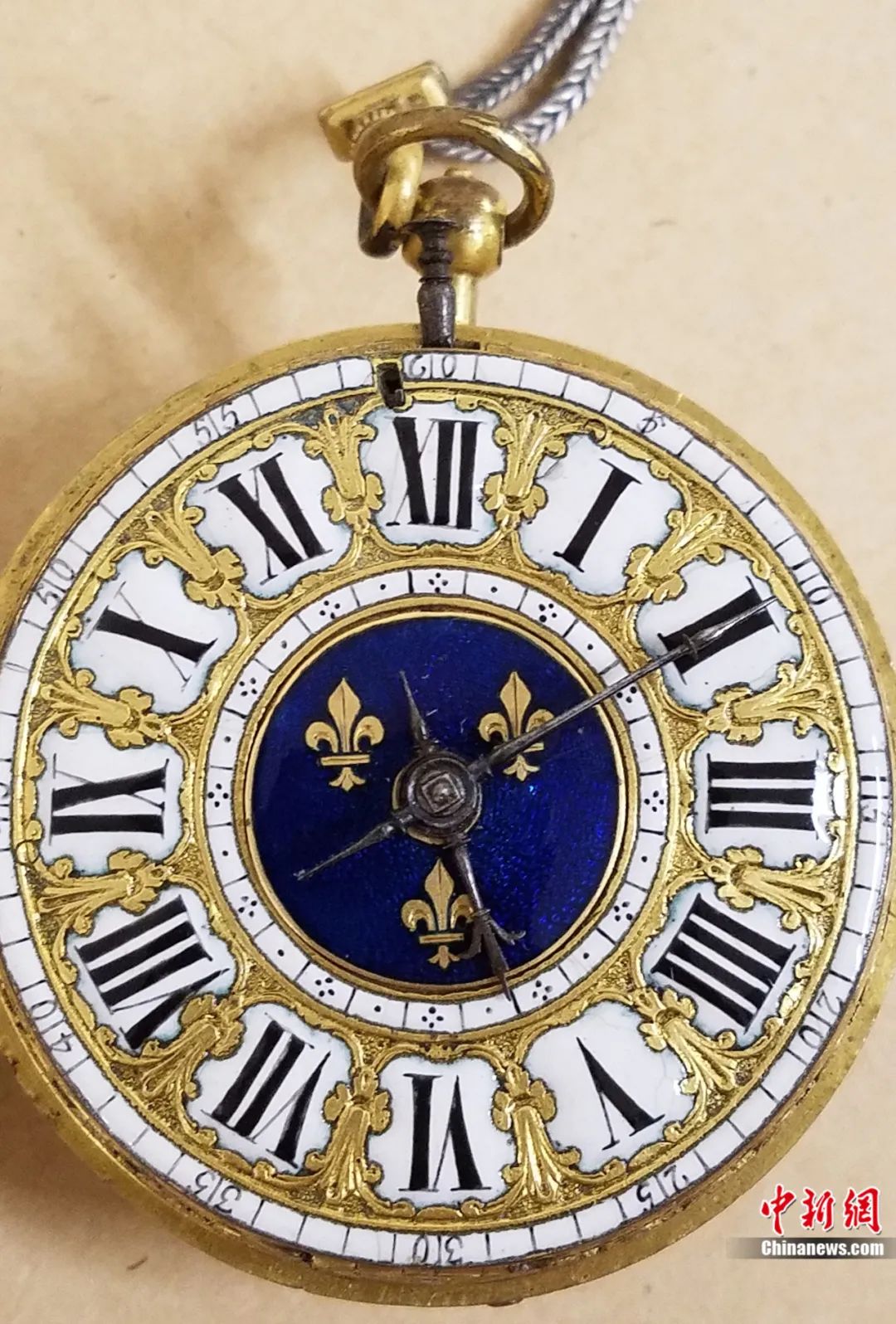 故宮博物院現(xiàn)收藏的一只銅鍍金殼懷表頗為引人注目,表殼上的浮雕人像為路易十四,表盤正中的藍(lán)色琺瑯和金色百合花圖案是典型的法國皇室標(biāo)志,懷表內(nèi)部卻雕刻了一條五爪行龍。為何這只西洋懷表內(nèi)部雕刻中國龍?它見證了怎樣的東西方交流史?故宮博物院研究館員、故宮研究院鐘表研究所所長郭福祥近日接受中新社“東西問”專訪,對此一一作答。