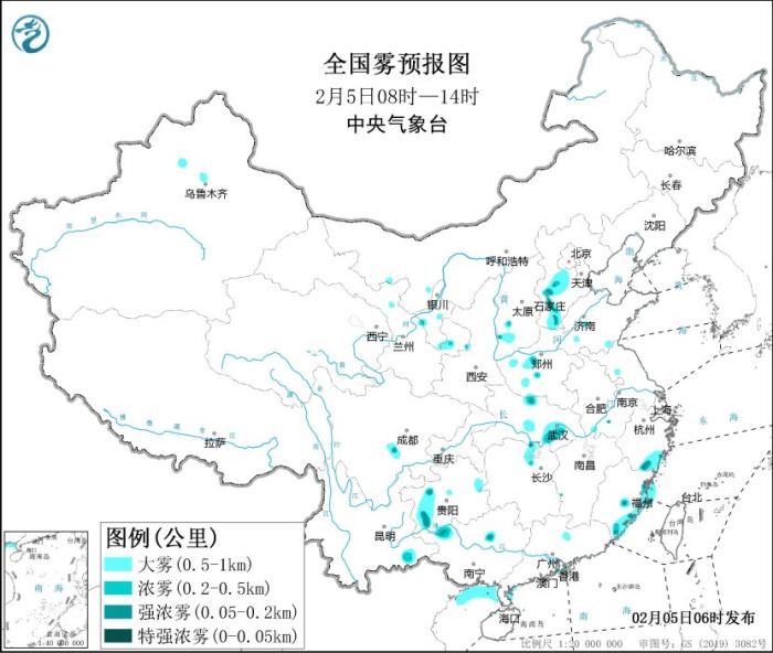 中央氣象臺2月5日06時繼續(xù)發(fā)布大霧黃色預(yù)警:預(yù)計(jì),5日早晨至上午,雷州半島沿岸海域、粵西沿岸海域、北部灣偏北海域、福建沿岸的部分海域?qū)⒂写箪F,能見度不足1公里。此外,河北西部、山西西南部、河南南部、湖北中東部、浙江東南部、福建東部、貴州西部等地有大霧天氣,局地有能見度不足200米的強(qiáng)濃霧。