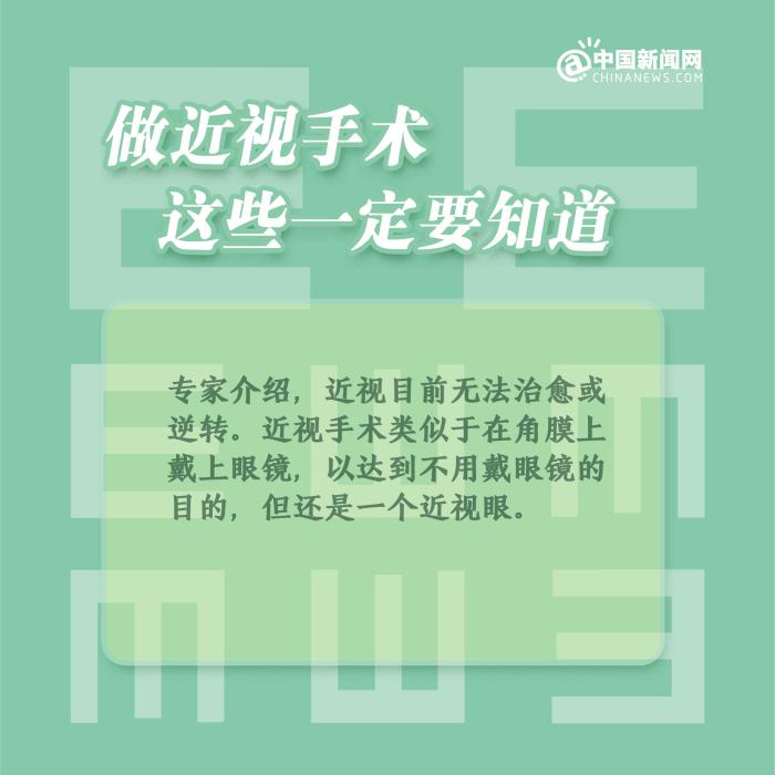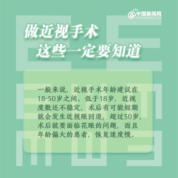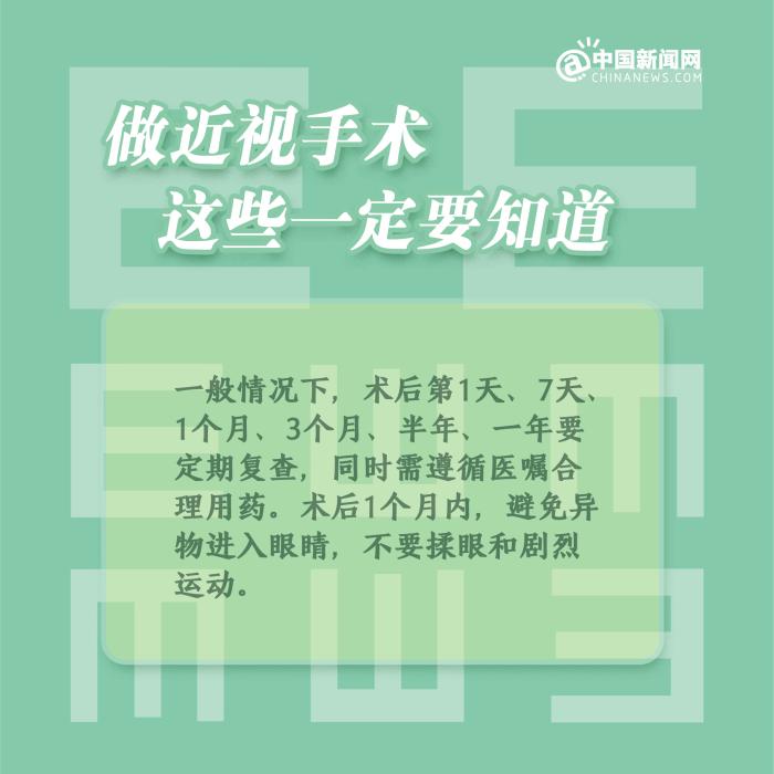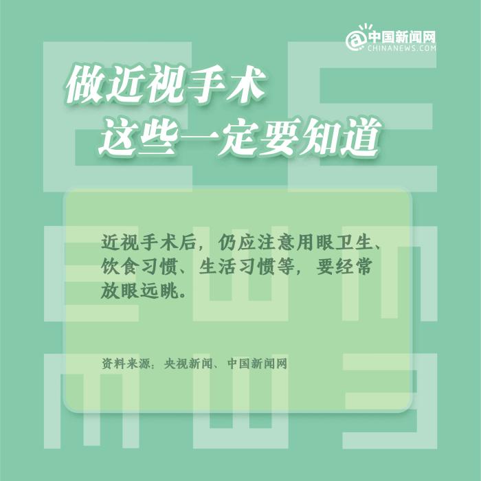 中新網2月4日電 ①近視手術,分為角膜激光手術和眼內鏡植入手術;②一般來說,近視手術的時間建議在18-50歲之間;③術后1個月內,避免異物進入眼睛,不要揉眼和劇烈運動;④術后仍應注意用眼衛(wèi)生、飲食習慣、生活習慣等,要經常放眼遠眺。