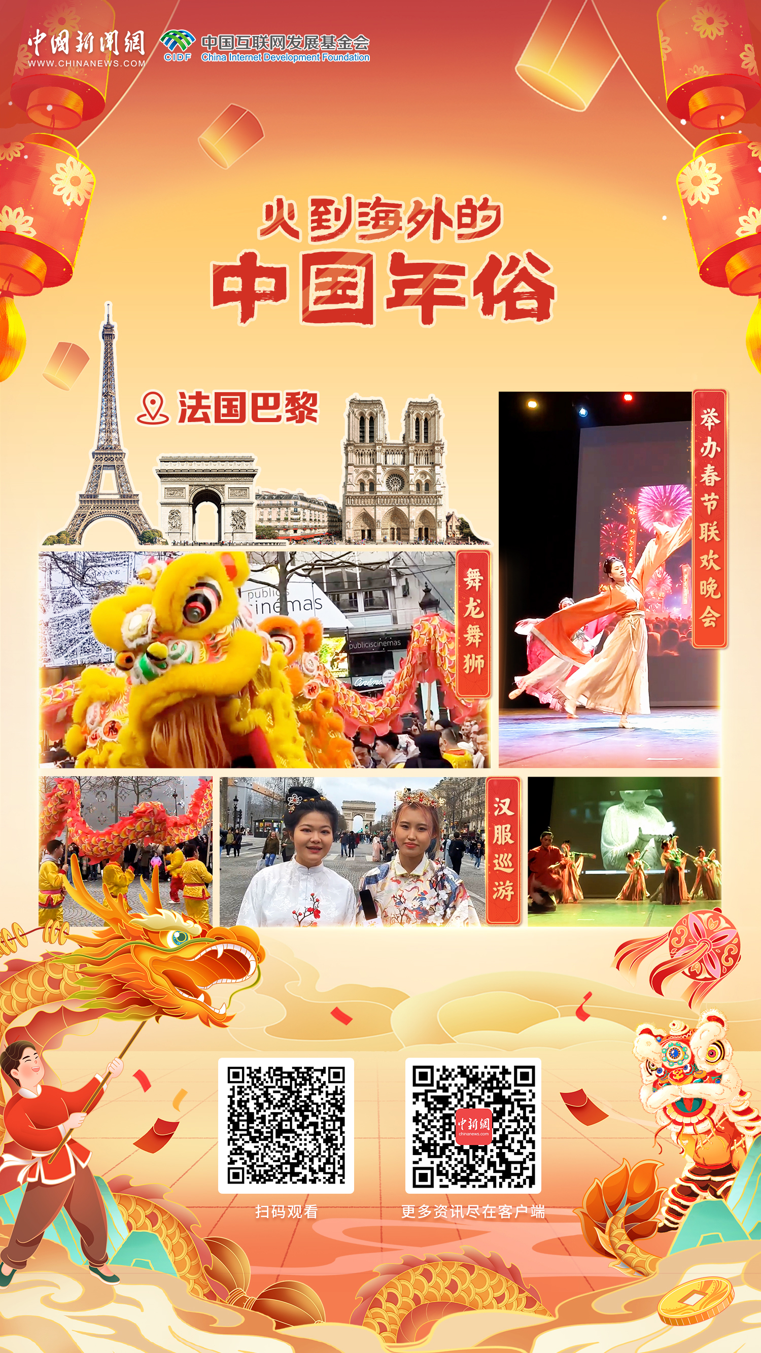 全球同慶中國年丨舞龍舞獅、漢服巡游,中國年俗表演吸引巴黎游人