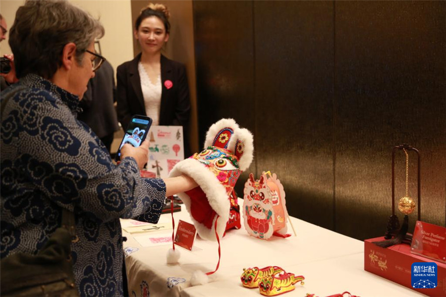 2月27日,在美國(guó)紐約,一名參會(huì)者在陜西省文化和旅游廳與中國(guó)駐紐約旅游辦事處舉辦的陜西文化旅游推介會(huì)上拍攝陜西民俗產(chǎn)品。新華社記者 劉亞南 攝