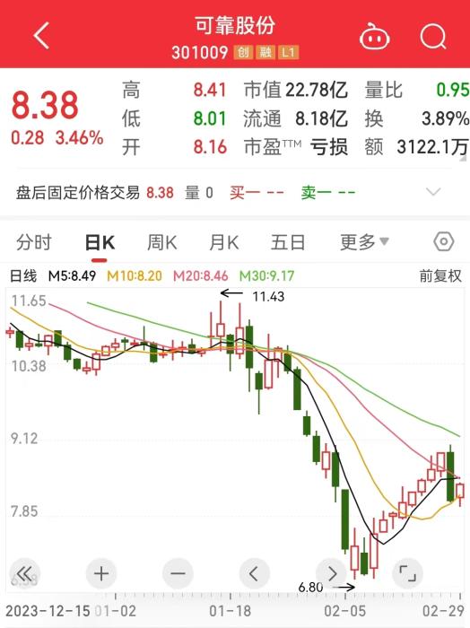 29日,可靠股份日K走勢(shì)圖。