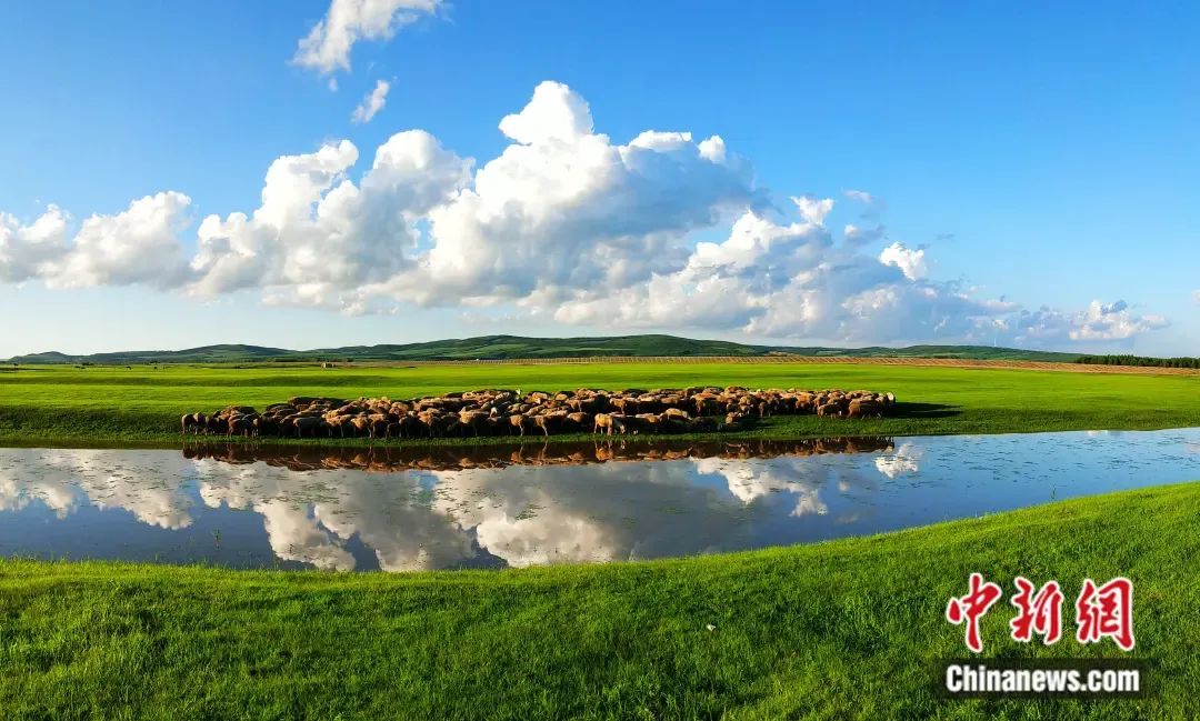 夏季的呼倫貝爾草原水草豐美,牛羊成群。 蔣希武 攝