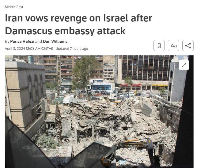 據此前報道,伊朗伊斯蘭革命衛(wèi)隊當地時間1日表示,伊朗駐敘利亞大使館領事部門建筑遭以色列襲擊,造成包括高級將領在內的多名成員死亡。
